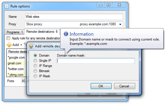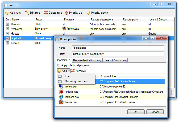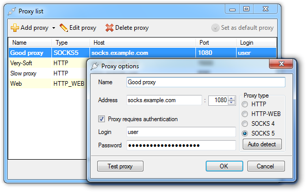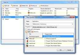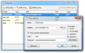 Powerful proxifier and a proxy configuration tool. You can setup facebook proxy, youtube proxy, socks proxy or any other kind of proxys. You can connect to most popular proxy servers with custom proxy settings. It's easy to bypass proxy, unblock proxy, redirect all network connections using anonymous proxy, your own proxy list or proxy sites.