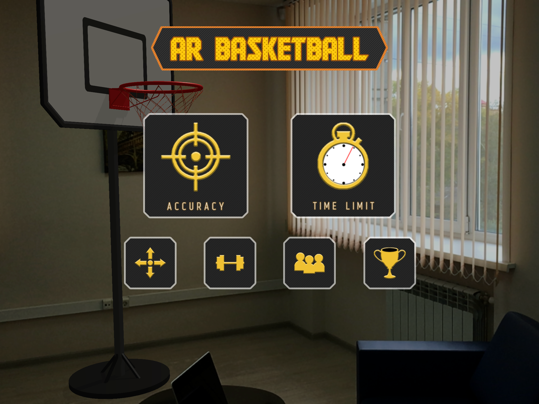 Play Basketball anywhere - directly at home, in the office or even on the street, when there is no real basketball ring nearby.
